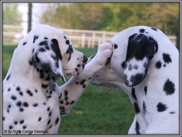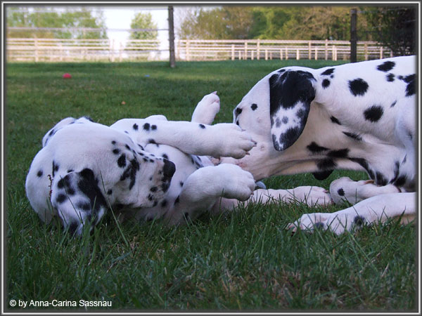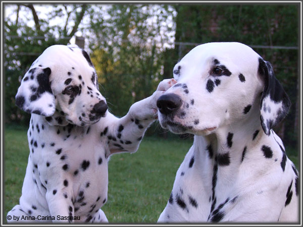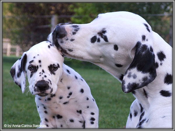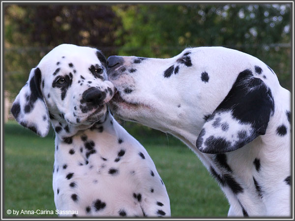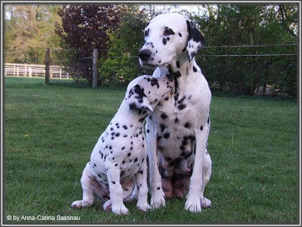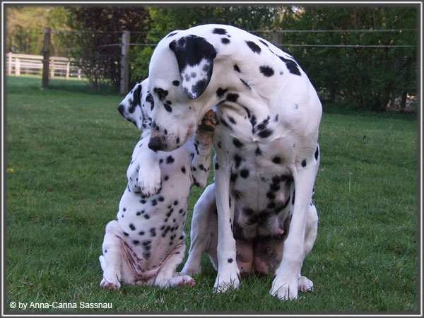 "Alaska" hatte 2 Würfe mit 19 wunderbaren Welpen. Bei der Pflege, Aufzucht und Erziehung hat "Alaska" jeden Tag auf's Neue ihr bestmögliches gegeben und sich sehr liebevoll um jeden einzelnen Welpen gekümmert. In dieser Fotogalerie kann ich natürlich nur einige Ausschnitte davon zeigen. Auf den Foto's ist "Alaska" mit ihrer Tochter "Black Smarties" (im Alter von 8 Wochen) zu sehen.