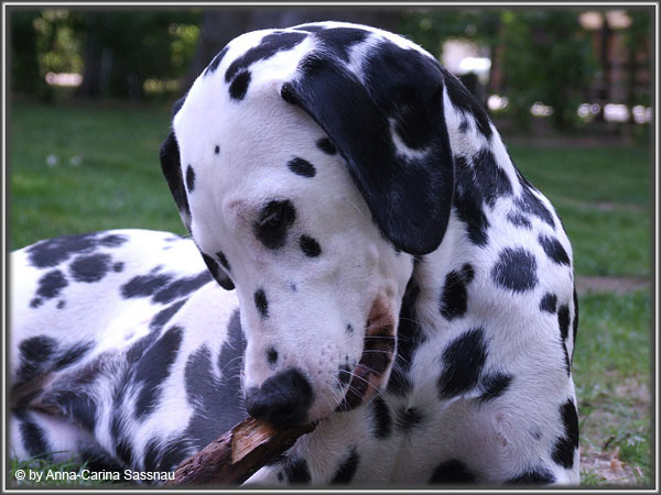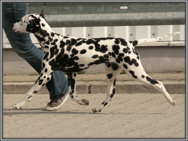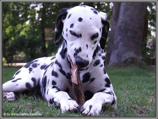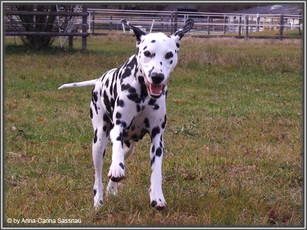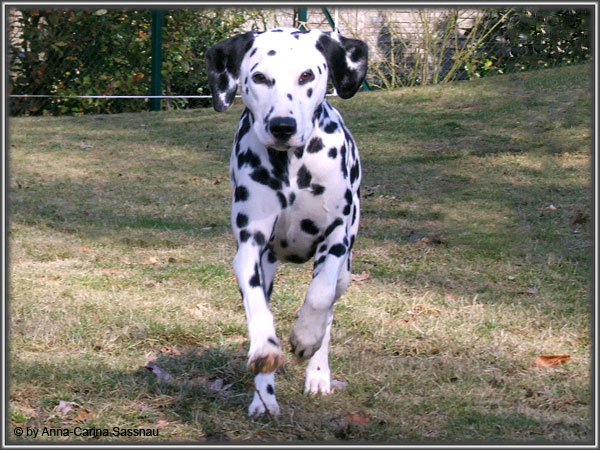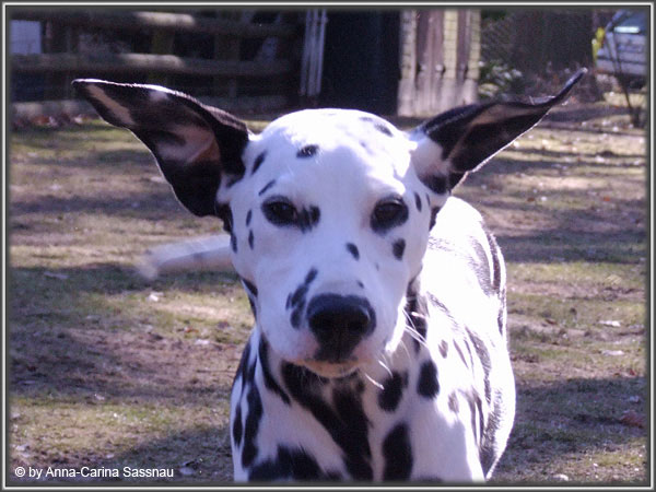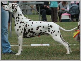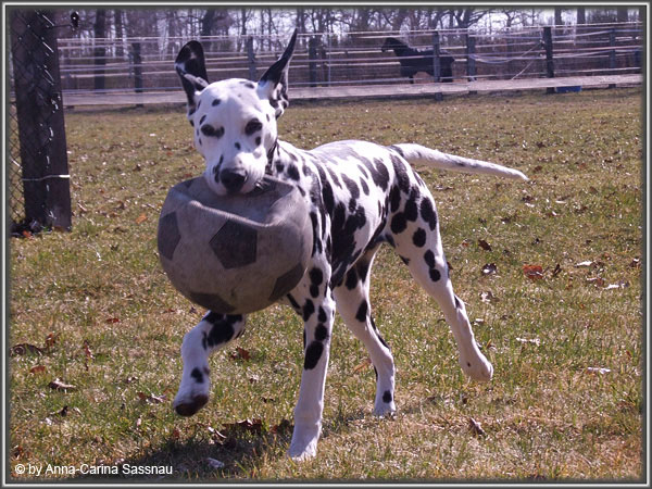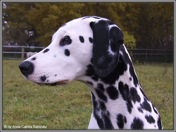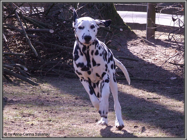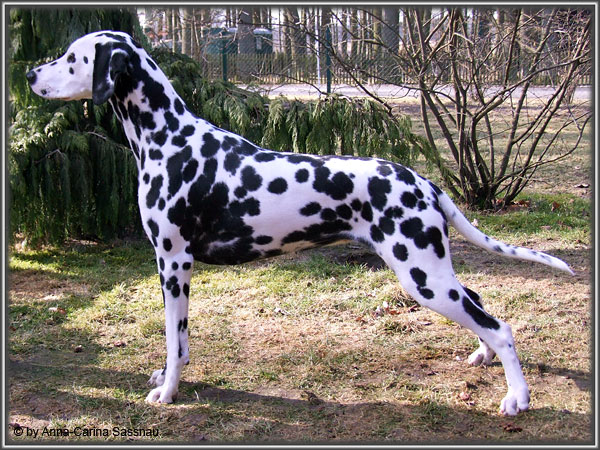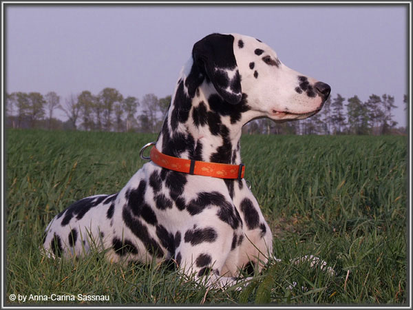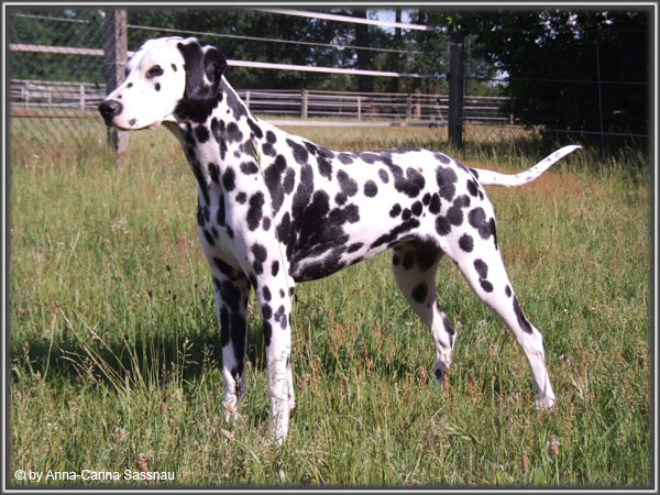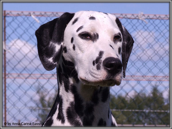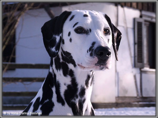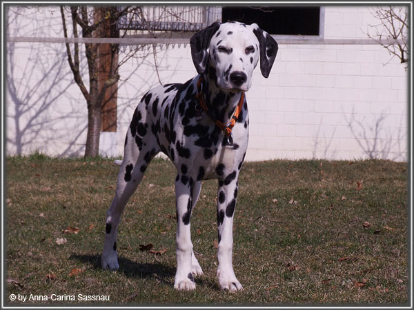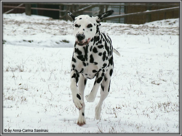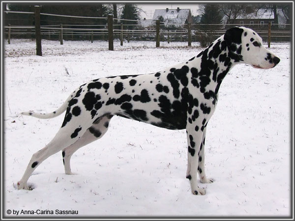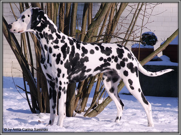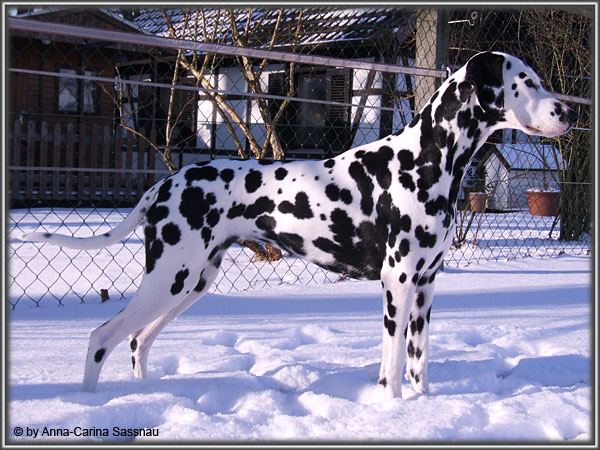Wir waren auf der Suche nach einer zweiten Hündin, die für Ausstellungen und Zucht beste Voraussetzungen mitbringt. Somit zog "Jingle Belle" im Alter von 5 Monaten zu uns. Zudem hat sie einen tollen Charakter und ergänzt unser Rudel perfekt. "Jingle Belle" bringt mit ihrer lustigen Art jeden zum Lachen. Sie ist eine sehr intelligente Hündin, die enorm schnell lernt und ein sehr ausdrucksstarkes Erscheinungsbild hat. Wir sind mit ihr national und international erfolgreich auf Ausstellungen unterwegs gewesen und sie ist mittlerweile im Besitz von drei Champion-Titeln. "Jingle Belle" ist die Mutter von unserem C-Wurf und D-Wurf.