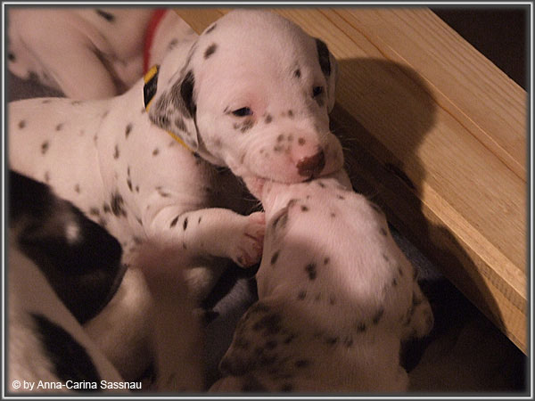 Nun ist auch schon die 3. Woche vorbei. Unsere Welpen werden täglich aktiver und haben sich prächtig entwickelt. Mittlerweile sind alle Augen und Ohren auf. Alaska hat alle Pfoten voll zu tun und auch unsere Waschmaschine läuft ununterbrochen. Diese Woche haben unsere Welpen ihre erste Wurmkur und auch die erste Welpenmilch bekommen. Nun könnt ihr euch erstmal die Bilder der 3. Woche anschauen...