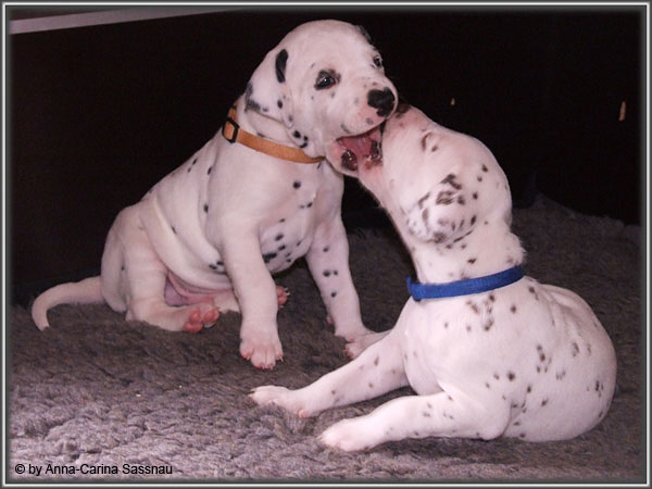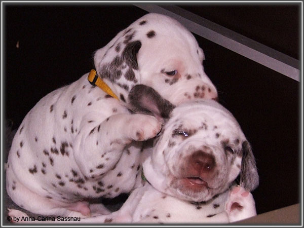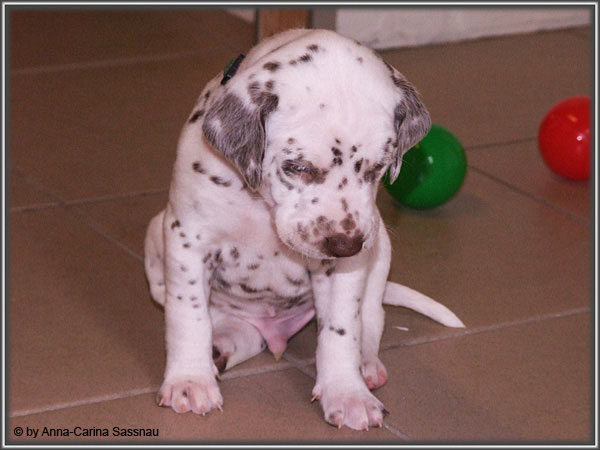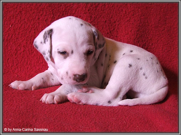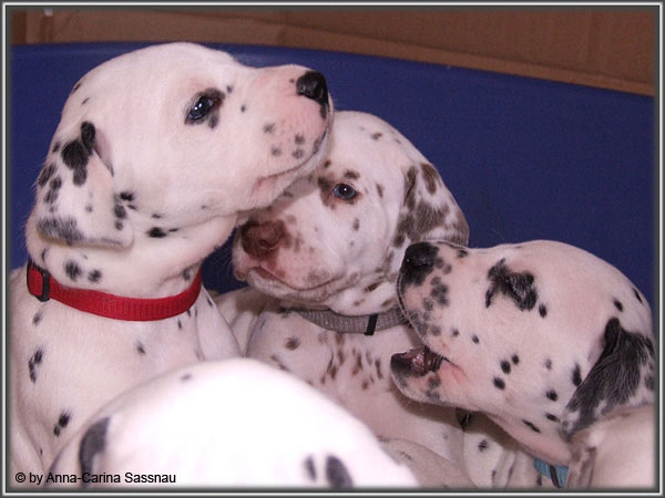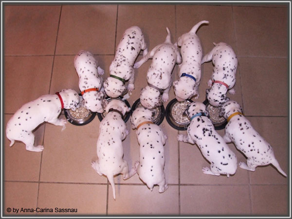 Wie schnell doch die Zeit vergeht... Die 4. Woche ist vorbei und unsere Welpen werden täglicher aktiver. Diese Woche war für unsere Welpen sehr interessant und auch die ersten Besucher waren schon da. Am Ende dieser Woche sind sie dann in ihr Welpenhaus umgezogen. Da das Wetter die letzten Tage nicht so schön war, konnten sie leider noch nicht den Auslauf erkunden. Dies werden sie dann aber nächste Woche nachholen ;-). Auch das Welpenfutter wird von allen bestens vertragen und sehr gerne gefressen. Wir wünschen euch viel Spaß beim Anschauen der Bilder...