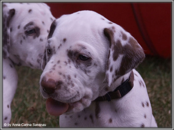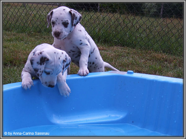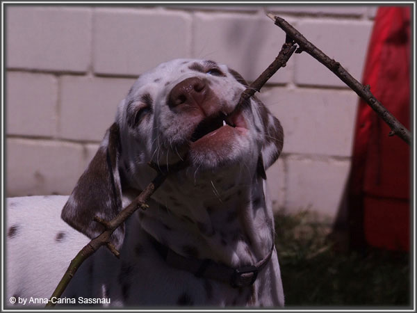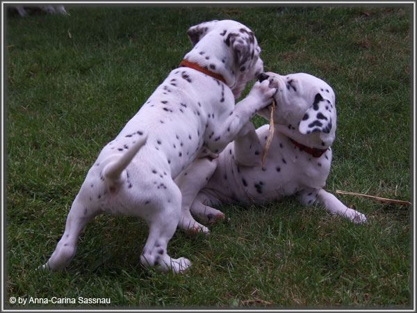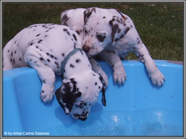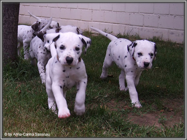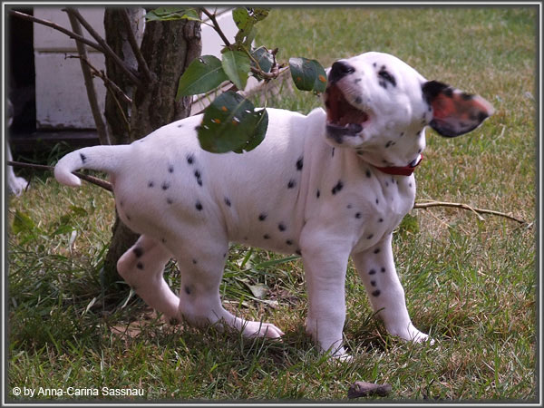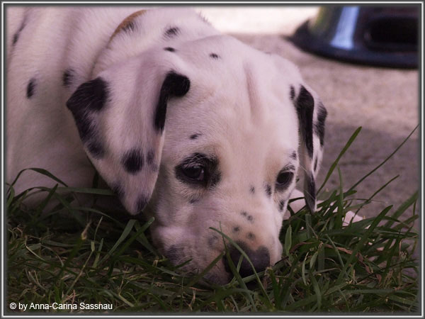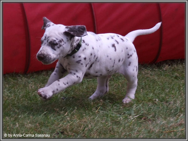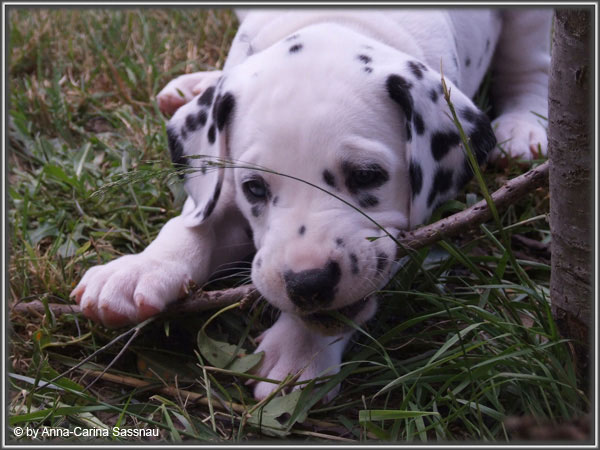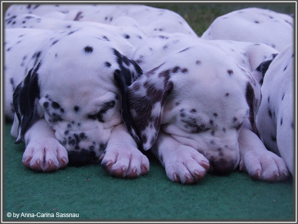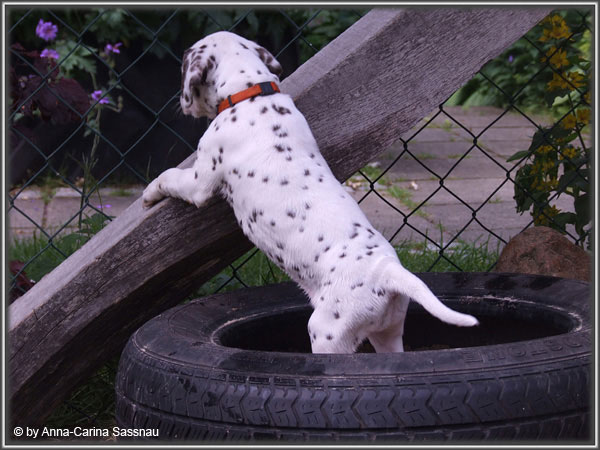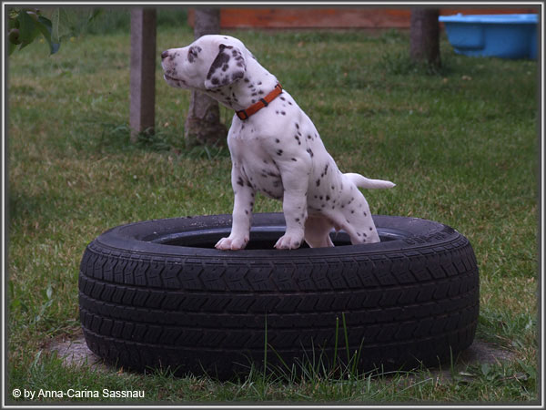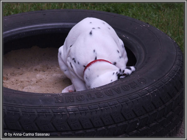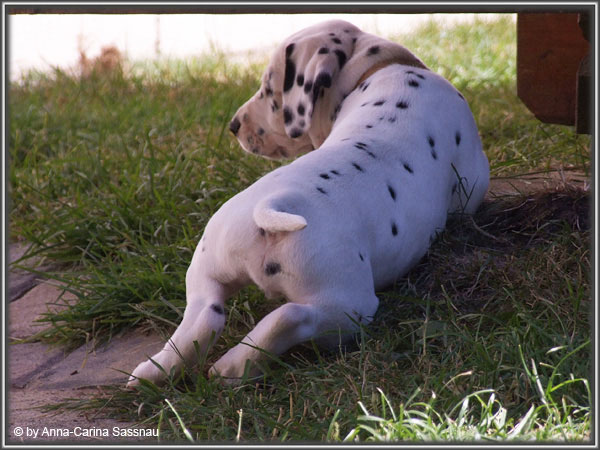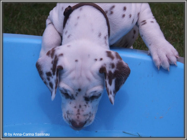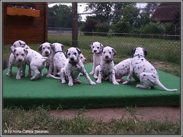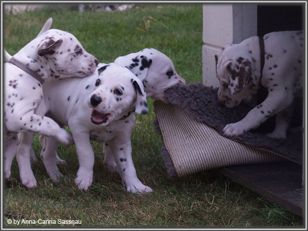 Diese Woche gab es für unsere Welpen keine "Rücksicht" mehr. Es wurde ohne Ende gespielt und das Schlafen wird nun auch gerne mal nach draußen verlegt. Das Welpenfutter wird mittlerweile lieber trocken als eingeweicht gefressen. Einige haben ihre Umwelt mit vollen Körpereinsatz erkundet. Wir waren sehr erfreut, dass unser Welpenhaus gestern morgen so sauber war, wie am Abend zuvor. Alle Welpen haben die ganze Nacht brav durchgehalten ;-). Einige Welpen suchen auch noch ihre Familie für's Leben. Wenn Sie also Interesse an einem unserer Welpen haben, können Sie uns gerne kontaktieren. Wir wünschen euch viel Spaß bei den Bildern ...