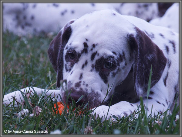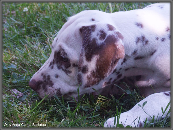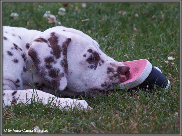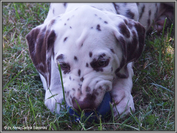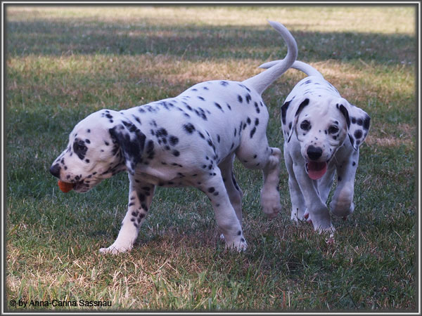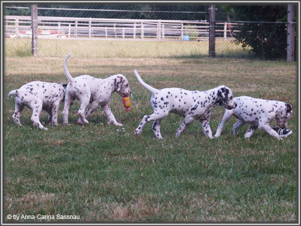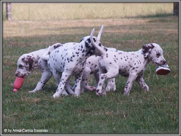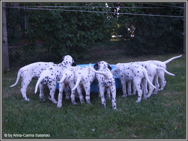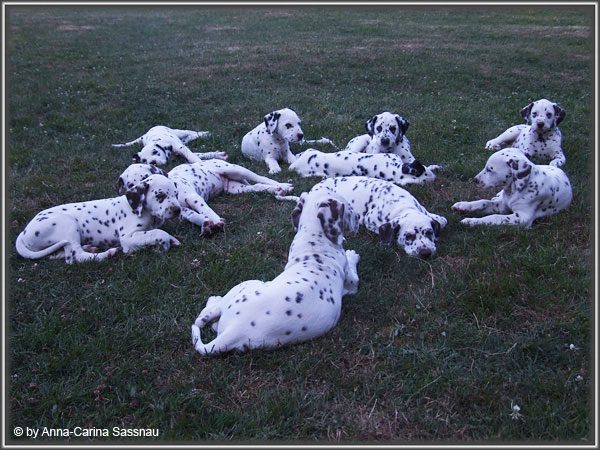 Die 8. Woche ist vorbei und somit auch die letzte Woche mit allen Welpen zusammen. Unsere Welpen wurden diese Woche AEP untersucht - das Ergebnis: Alle 10 Welpen können hören. Ein Welpe ist einseitig und alle anderen beidseitig hörend. Wir sind sehr mit dem Ergebnis zufrieden. Außerdem wurden unsere Welpen geimpft und gechipt. Es war eine sehr schöne letzte Woche und wir werden alle unsere Welpi's sehr vermissen. Der Abschied vom unserem ersten viel uns ganz besonders schwer. Wir hoffen aber, dass wir nette Familien gefunden haben und wir sicherlich öfters was von unseren kleinen "Baby's" hören werden. Einige suchen auch noch ihre Familie für's Leben. Jetzt könnt ihr euch die letzten Bilder von unseren A-chen anschauen.