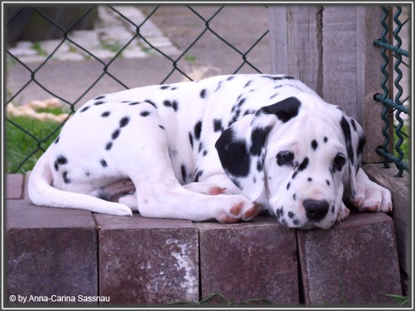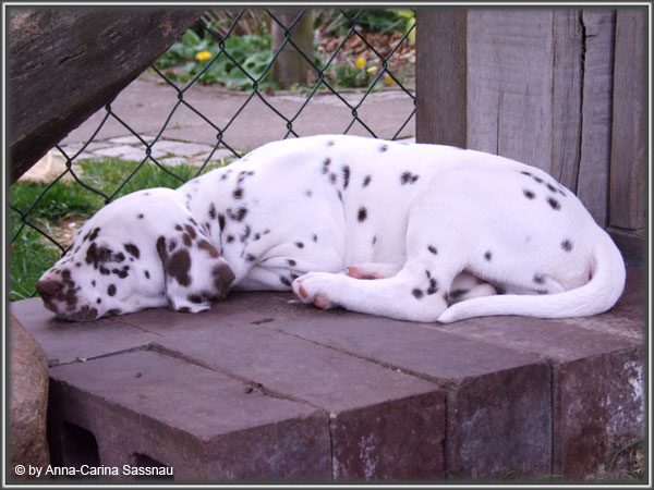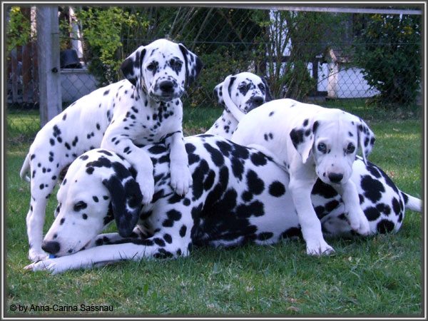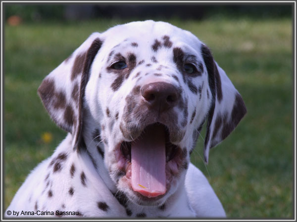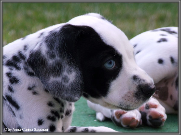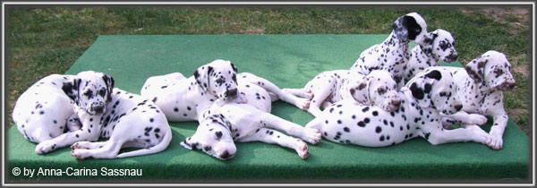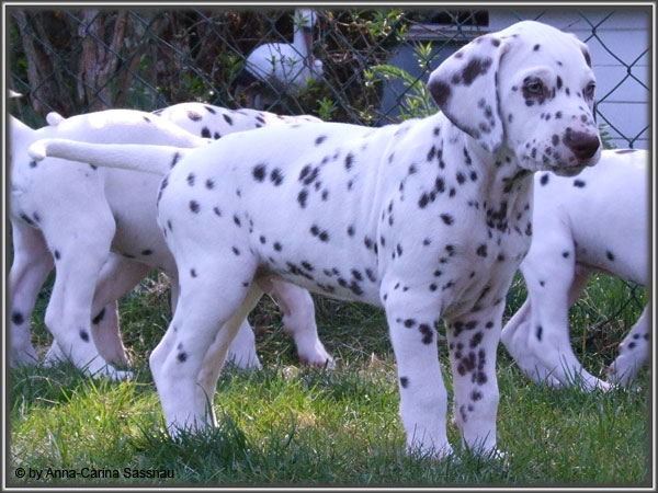 Nun ist auch die 8. und letzte Woche mit allen Welpen gemeinsam vorbei. Unsere Welpen wurden geimpft, gechippt und AEP untersucht. Zu unserer Freude: ALLE WELPEN SIND BEIDSEITIG HÖREND!! Anfang der 9. Woche fand dann die Wurfabnahme statt und gleich danach zogen auch schon die ersten Welpen aus. "Brilliant Diamond" machte den Anfang und hat 12 Stunden Autofahrt gut überstanden. Sie ist gesund und munter im neuen Heim (Österreich) angekommen. Nach und nach sind alle Welpen ausgezogen und haben ein tolles Zuhause gefunden!