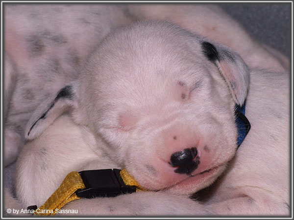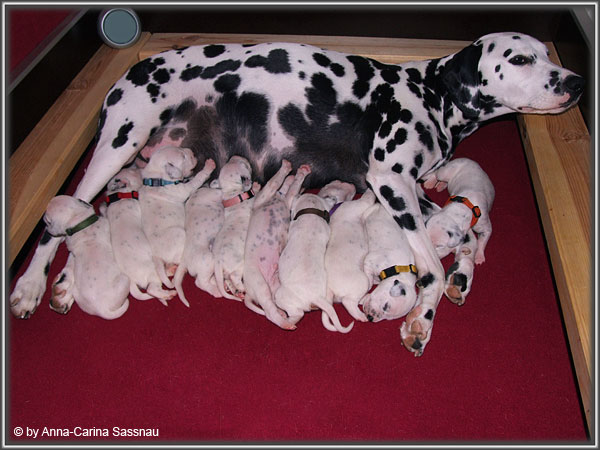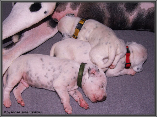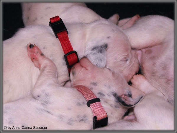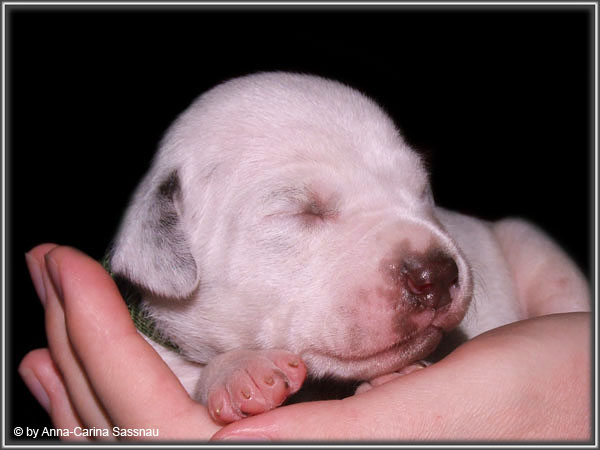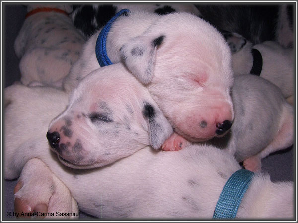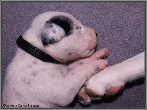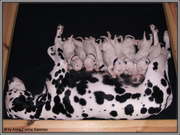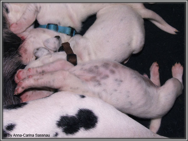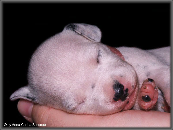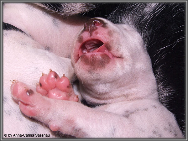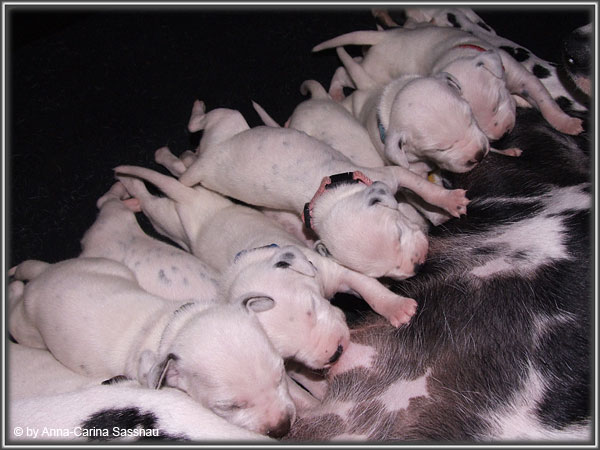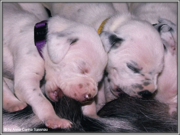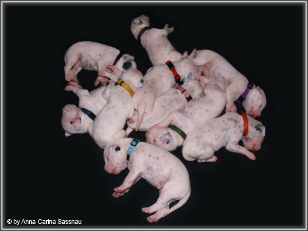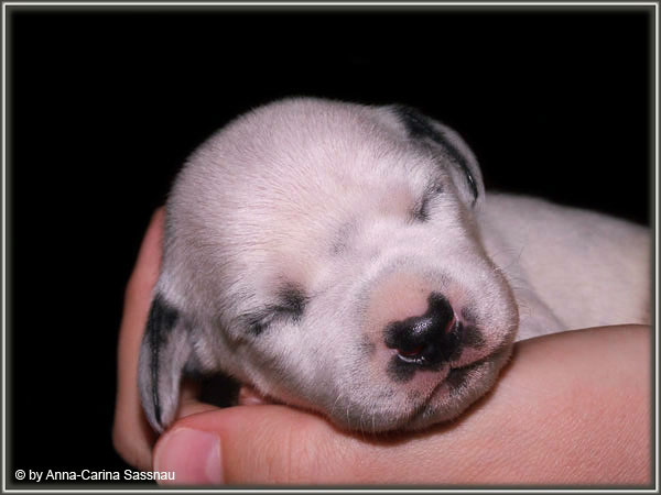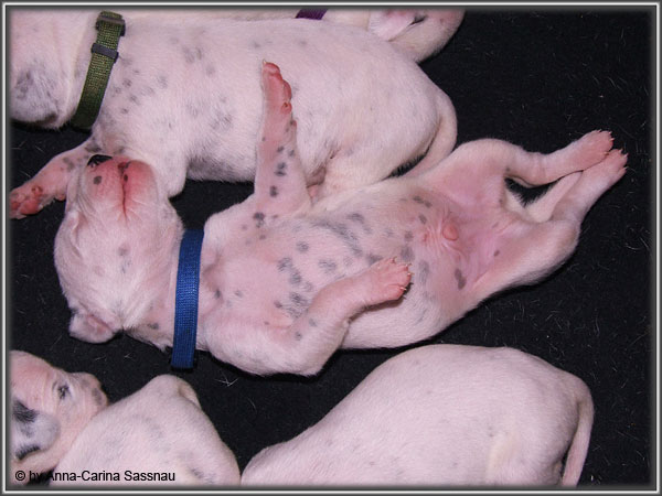 Die 2. Woche unserer C-chen ist um. Alle 10 sind putzmunter und auch Mama "Hollywood" geht's gut. Am letzten Tag der 2. Woche öffneten sich langsam die ersten Augen und Ohren. Gelaufen wird schon fleißig seit Anfang der Woche und krabbeln gehört schon wieder der Vergangenheit an. Wie schnell doch die Zeit verfliegt. Die Punkte kann man bei allen schon sehr gut erkennen... Wer sich diese Woche auf die Namen gefreut hat, den muss ich leider enttäuschen. Ich bin noch nicht komplett mit allen Namen zufrieden und somit werden sie frühestens nächste Woche bekannt gegeben. Aber dafür gibt's ein paar Bilder mehr zum Anschauen ;-)