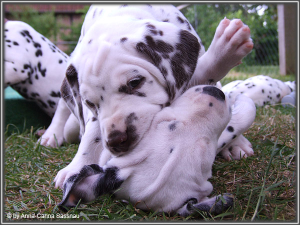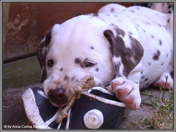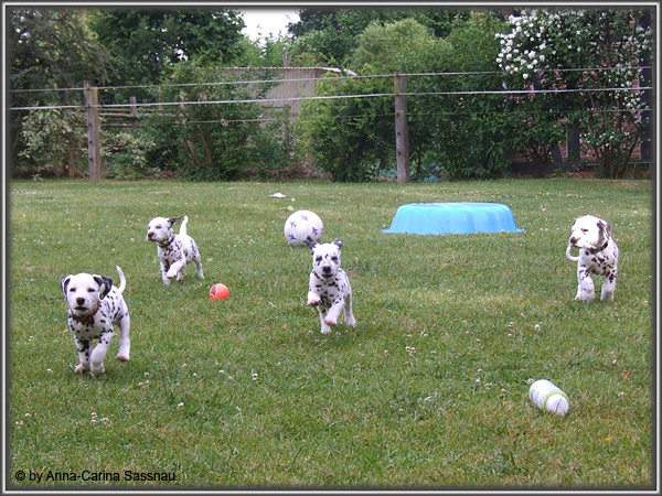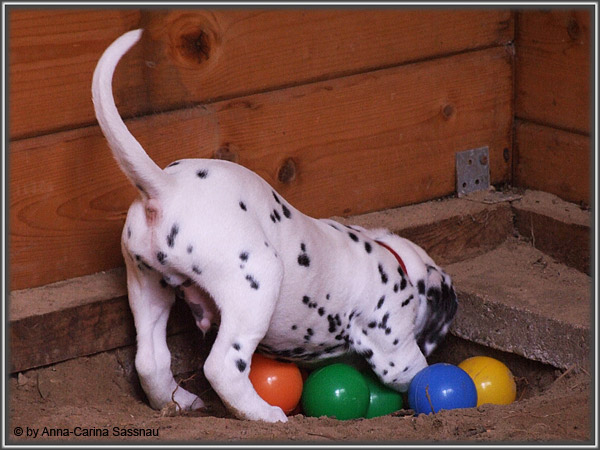 Nun ist auch schon die 6. Woche vorbei... Die Welpen haben diese Woche das Sand-Haus für sich entdeckt und haben alle unglaublich viel Spaß beim Buddeln ;-) Es stand wieder viel Besuch auf dem Plan und es waren auch viele fremde Hunde mit dabei. Einfach toll, wie unerschrocken und neugierig alle C-chen mit neuen Situationen umgehen. Ich bin bisher mehr als zufrieden mit diesem tollen Wurf!!