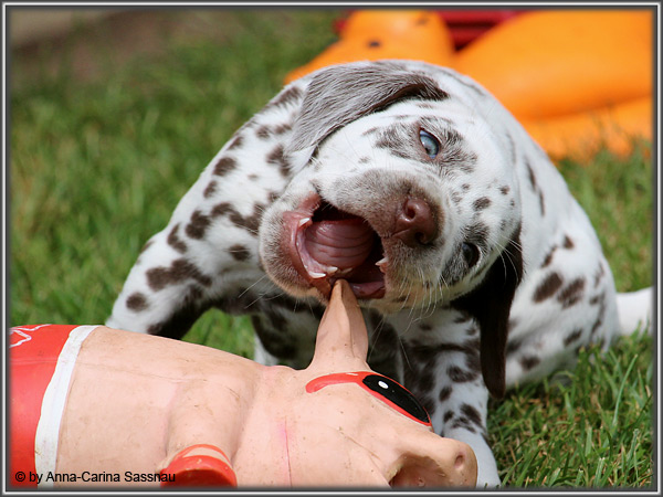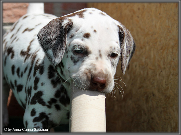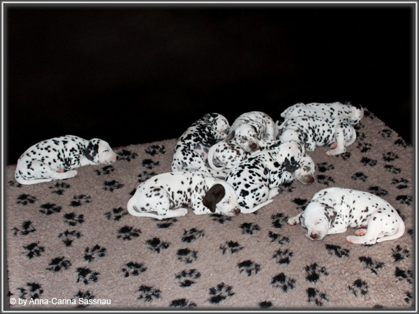 Diese Woche war es so warm, dass die kleinen D-chen nur morgens und abends draußen gespielt haben. Tagsüber wurde ganz viel geschlafen und es gab täglich zweibeinigen Besuch für die Welpen. Ich bin mehr als zufrieden mit der bisherigen Entwicklung unserer Welpen.