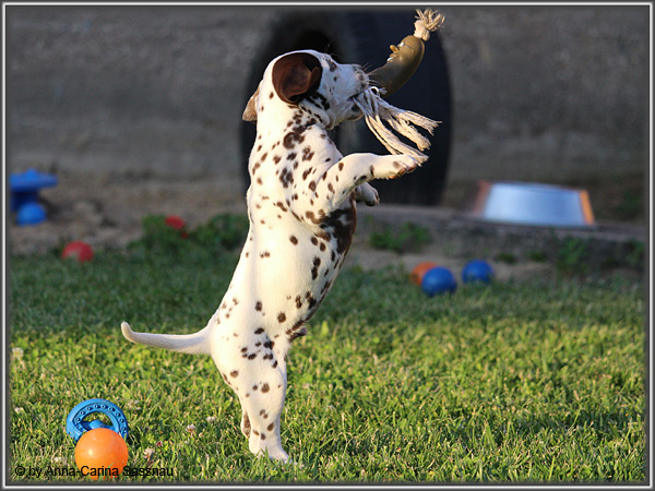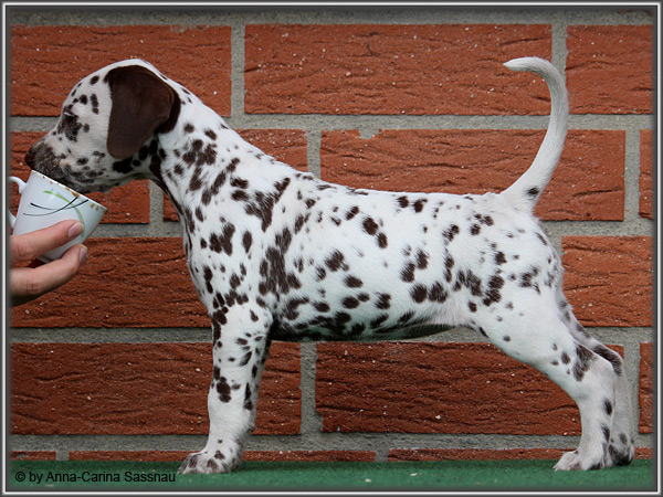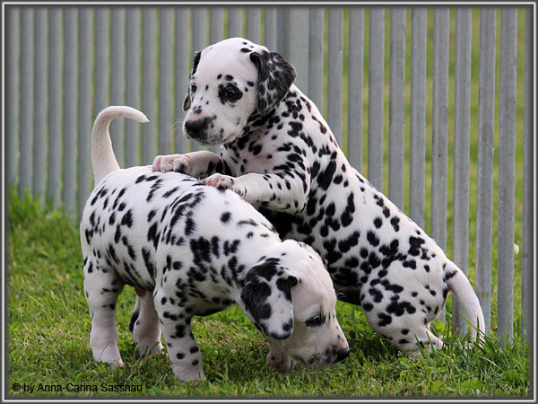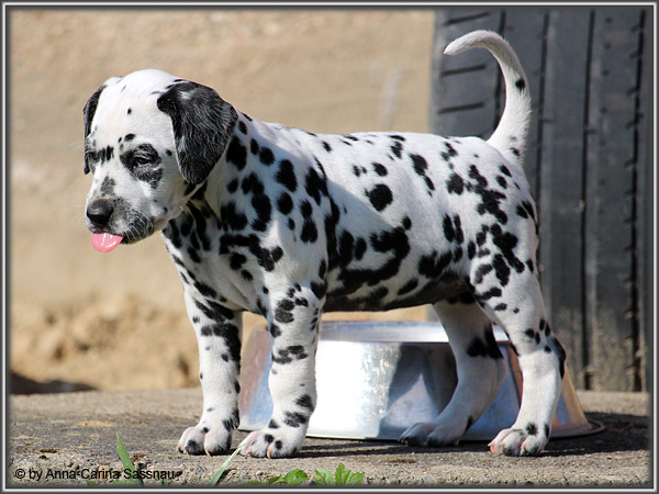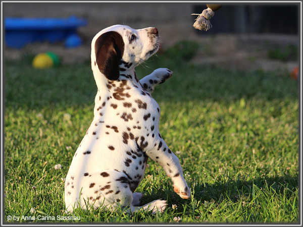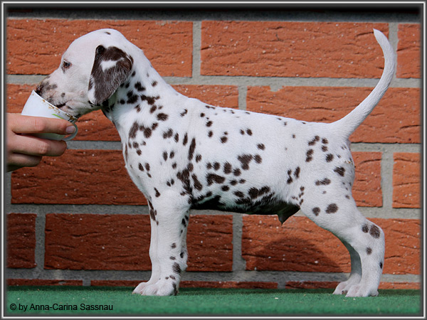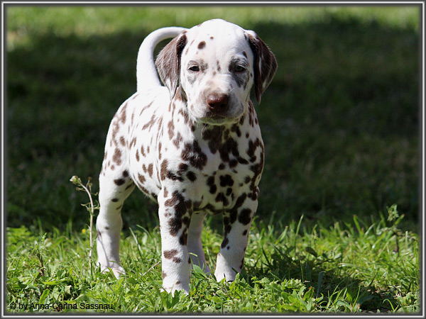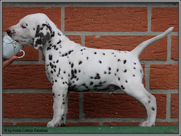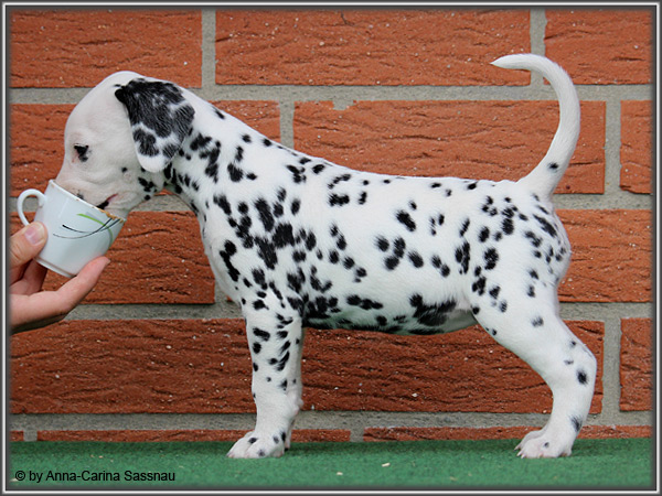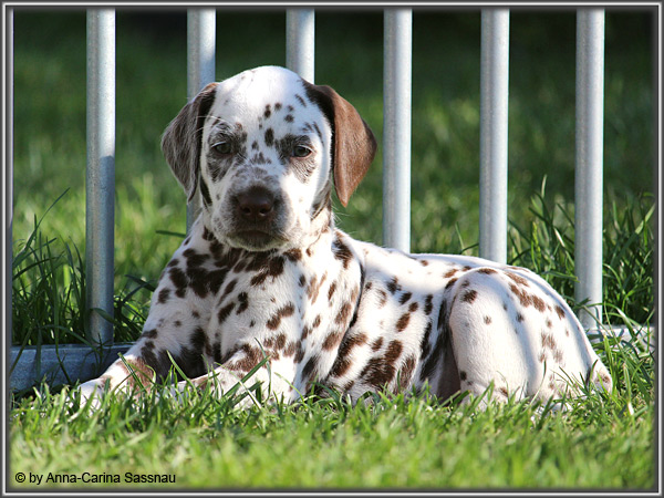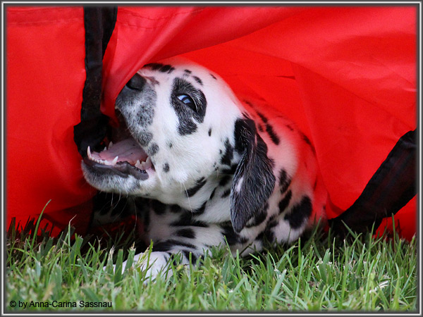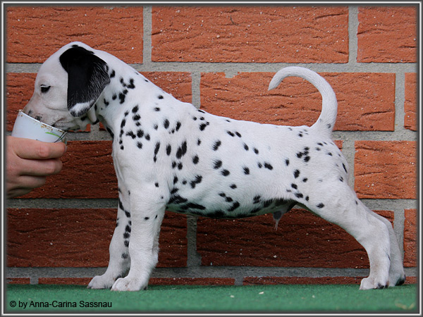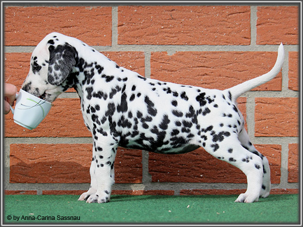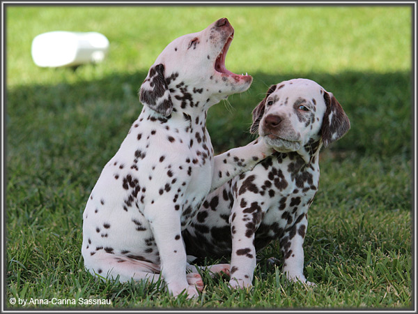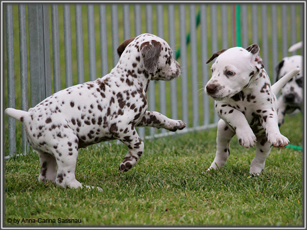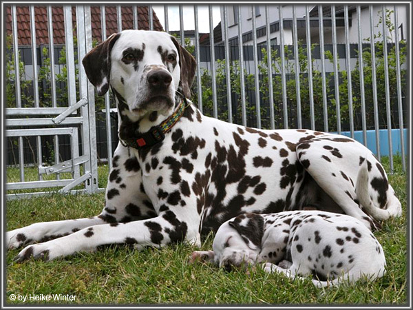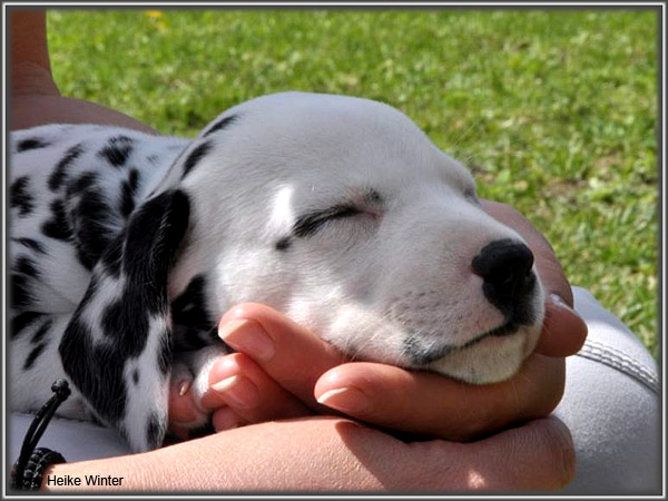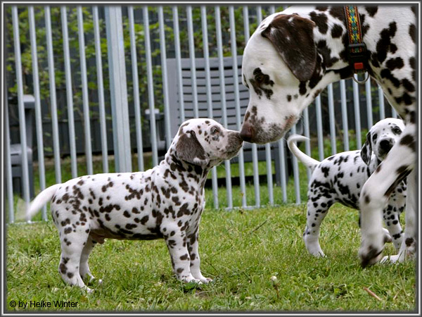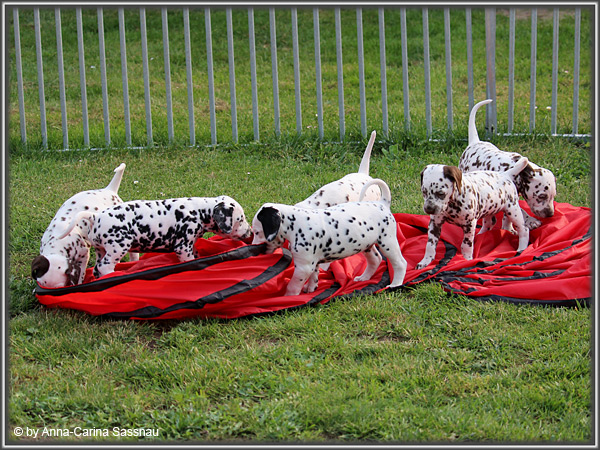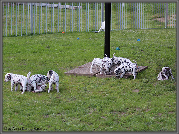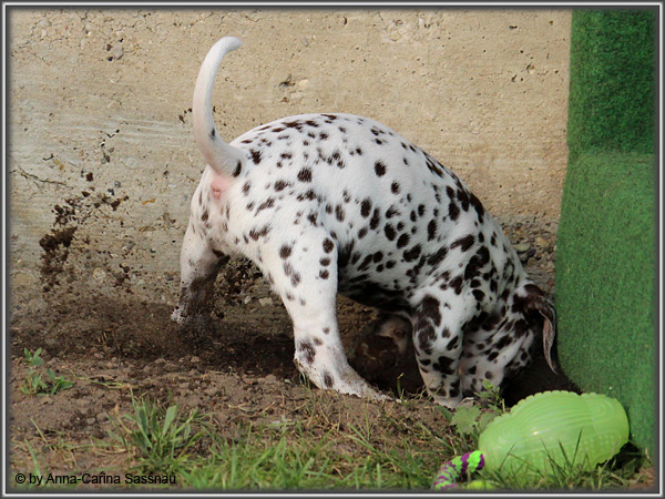 In der 6. Woche sind unsere kleinen D-chen zwar nicht mehr wirklich weiß, aber dafür glücklich gewesen. Buddeln stand ganz oben auf der Liste. Dementsprechend sind auch die Stehbilder etwas "staubig" ;-) Auch in dieser Woche gab es wieder täglich Besuch für die Welpen. Papa "Christi ORMOND Highly Diamond Fuji" hat seinen Sprösslingen auch einen Besuch abgestattet. Aber die Arbeit überlässt er dann doch lieber voll und ganz der Mama ;-) "Alaska" hat sich sehr gefreut über den hübschen Männer-Besuch daheim :-)