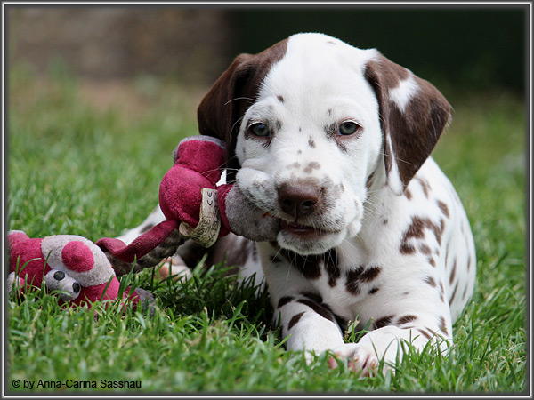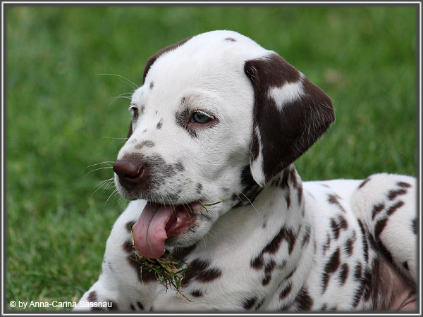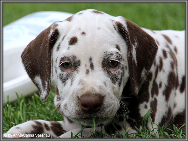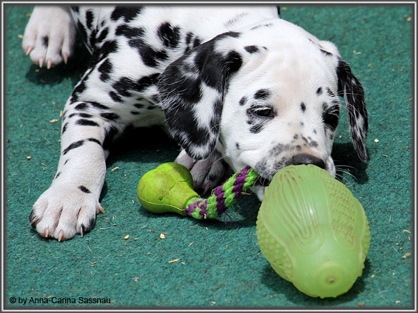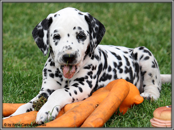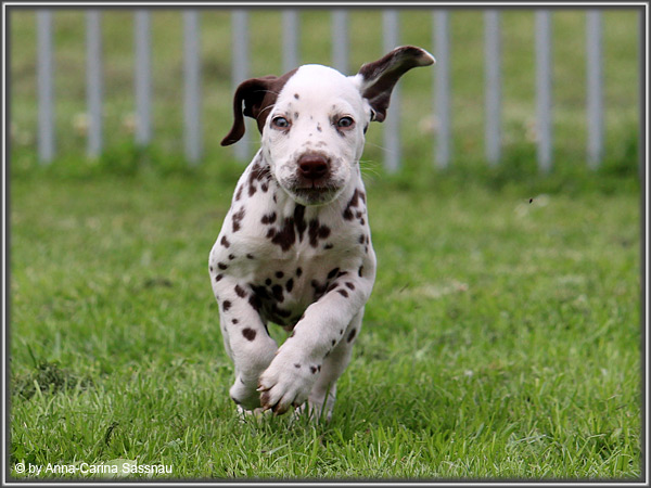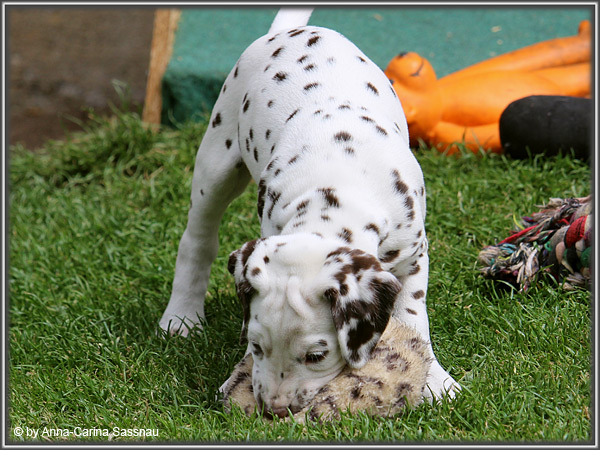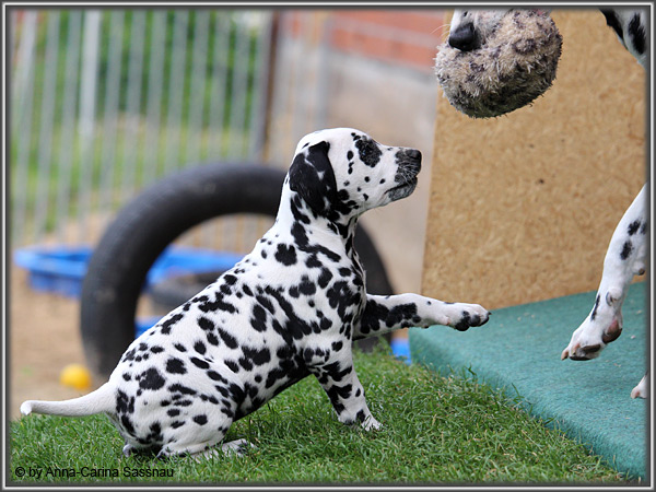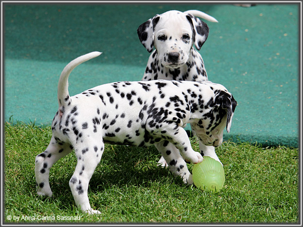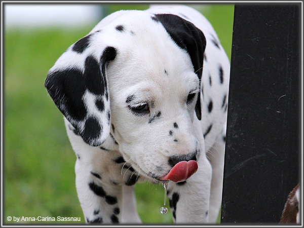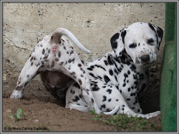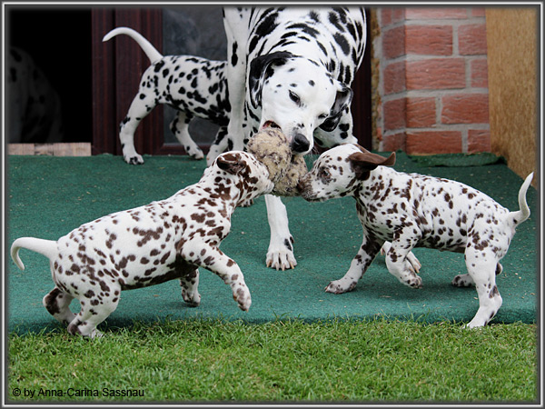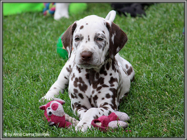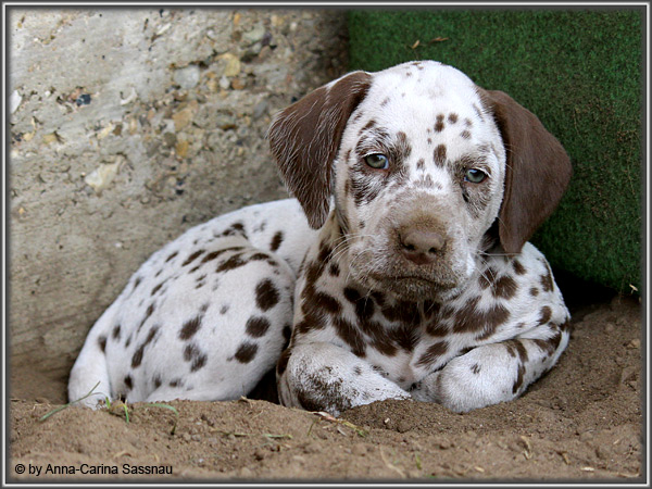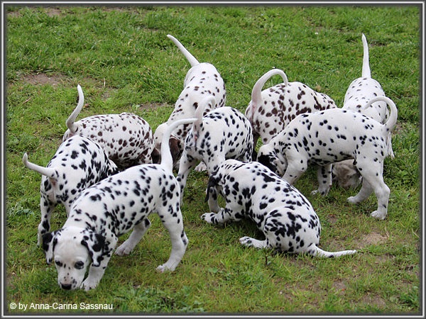 In der 7. Woche stand für unsere D-chen ein einzigartiger Tag auf dem Programm. Wie auch unser C-Wurf durften die Welpen Fernseh-Luft schnuppern. Gemeinsam ging es natürlich mit Mama "Hollywood" & "Alaska" nach Hamburg. Die gut 2-stündige Autofahrt wurde relativ gelassen hingenommen. Gerade angekommen mussten die Kleinen zusammen mit Mama zur Probe auf die Bühne. "Alaska" durfte es sich hinter den Kulissen auf dem Sofa gemütlich machen ;-). Den ganzen Tag hatten wir ohne Pause Besuch von groß und klein in unserer Garderobe; natürlich wegen den Welpen. Abends ging es dann mit allem drum und dran auf die Bühne zur Aufzeichnung der Sendung. Wie schon bei der Probe fanden die Welpen die Deko um einiges interessanter als alles andere. Völlig selbstverständlich ging jeder seinen Weg... entgegengesetzt der Kameras ;-) "Deluxe Edition" durfte sogar auf dem Arm von Jörg Pilawa Platz nehmen. Ein aufregender Tag für alle beteiligten; sodass die Rückfahrt späten Abend ganz entspannt war mit den müden Film-Stars. Zuhause angekommen waren sie dann aber doch sehr glücklich ihren Garten wieder zu haben :-)