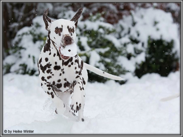 Unser C-Wurf ist schon fast 3 Jahre alt. Im Ganzen hat uns der Wurf und die Entwicklung der Welpen sehr gut gefallen. Es gibt aber natürlich immer einige "Punkte" die man noch verbessern möchte. Aus diesem Grund haben wir einen ganz bestimmten Rüden für "Assiduitas Jingle Belle" (genannt Hollywood) und unseren D-Wurf gesucht. Er sollte substanzvoll und kompakt, aber nicht zu groß sein; einen maskulinen Kopf und ein kräftiges Pigment haben. Die Gesundheit steht natürlich ganz vorne auf der Liste, ebenso wie ein einwandfreies Wesen. Unser B-Wurf ist mittlerweile 5 Jahre und die Hunde gefallen mir nach wie vor ausnahmslos sehr schön. Die Mutter von "Christi ORMOND Highly Diamond Fuji" (genannt Gem) ist die Schwester zu unserem B-Wurf Vater. So kann ich mit "Gem" diese Linie wieder aufgreifen. Beim ersten Kennenlernen waren "Alaska" und "Hollywood" von "Gem" begeistert. Das sind ja schon mal gute Voraussetzungen für diese Verpaarung :-). Neben seiner coolen Art ist "Gem" auch auf Ausstellungen sehr erfolgreich. "Gem" erfüllt alle Wünsche und Anforderungen die ich mir für meinen D-Wurf vorgestellt habe. Wir erhoffen uns aus dieser Champion-Verpaarung gesunde, liebenswerte und typvolle Familienhunde mit Ausstellungs-Ambitionen.