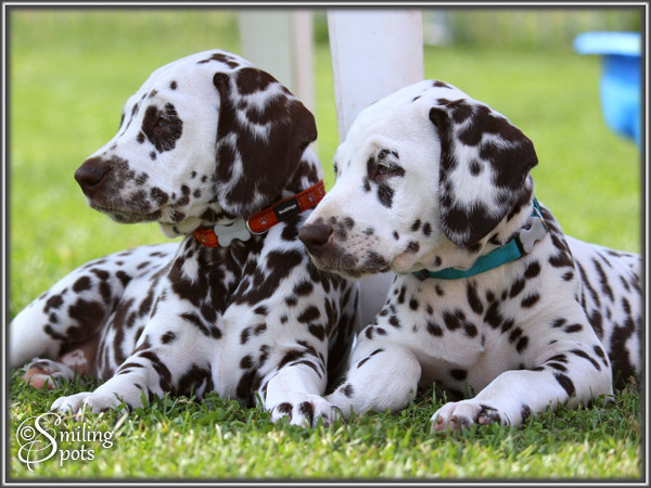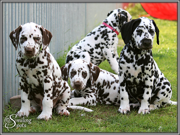 Hallo Leute! Wir sind "Enchanting Princess" & "Evening Sun". Dies war unsere letzte gemeinsame Woche ... Aber die haben wir natürlich voll genutzt! So langsam kommen wir nämlich auf richtig gute Ideen (Frauchen sagt "Blödsinn" dazu), aber uns macht das sehr viel Spaß und wir sind schließlich von selbst drauf gekommen - also: gute Ideen! Mama spielt auch viel mit uns, das finden wir alle super. Wenn sie uns dann zwischendurch erzieht, naja.... das kann sie eigentlich lassen - total unnötig. Wir sind nämlich richtig liebe Welpen. Frauchen ist auch äußerst zufrieden mit unserer bisherigen Entwicklung. Ansonsten gibt's nicht so viel zu erzählen. Wir Spielen, Schlafen, Fressen und haben eben ab und zu "gute Ideen". Die müssen wir dann in Zukunft alleine bei unseren neuen Besitzern ausprobieren, aber da fällt uns bestimmt auch alleine etwas ein, das Spaß macht. "Schwarzohr" & "Mini Snoopy" haben den Anfang gemacht und sind als erstes ausgezogen. Und in den nächsten 2 Wochen gehen wir dann nach und nach alle neue Wege. Bei Frauchen im Herzen bleiben wir aber natürlich für immer - jeder von uns auf seine ganz besondere Art & Weise!!