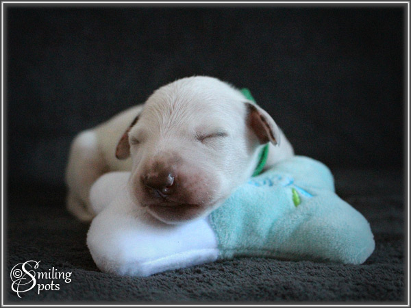 Hey Leute! Ich bin's "Mr. Green". Ich bin der Älteste von uns 7. Wir haben alle in der 1. Woche unser Geburtsgewicht mehr als verdoppelt; dank Mama's leckerer Milch und fürsorglicher Pflege. Im Gewicht liegt aktuell "Mr. Light-Green" vorne. Mama ist ab und zu auch schon mal wieder unterwegs. Aber wir sind ja auch schon "groß", da können wir auch mal einen Augenblick alleine bleiben. Mama kümmert sich super um uns - Tag und Nacht!! Mama ist und bleibt eben einfach die BESTE! Soo, nun muss ich aber auch wieder los; Mama-Milch trinken - will ja schließlich mal in Papa's Pfotenstapfen treten können...
