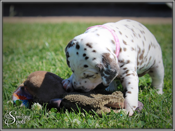 Hallo Leute! Ich bin "Fusion of Love". Nun sind wir schon 4 Wochen alt und entwickeln uns so langsam zu kleinen Rabauken. Wenn wir nicht gerade schlafen, dann spielen wir und erkunden unser neues Zuhause. Hier haben wir richtig viel Platz, sehr viel Spielzeug und einen großen Garten. Unsere Halbschwester "Soley" kommt uns nun auch öfter besuchen :-). Frauchen hat uns diese Woche auch endgültig die Namen zugeteilt, ich bin mit meinem auf jeden Fall sehr zufrieden :-) Sooo nun muss ich aber auch wieder los, kleine Würmchen haben großen Hunger und wollen die Welt entdecken!