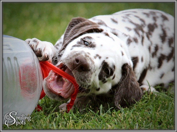 Hallo Leute! Ich bin "Fairytale Hope". Diese Woche war es so warm, dass wir tagsüber überwiegend im Welpenhaus verbracht haben - da ist es richtig schön kühl. Wir hatten die ganze Woche auch sehr viel Besuch. Der von uns mal mehr oder weniger begrüßt wurde - je nach Wetter. Wenn das so warm ist, dann interessiert uns einfach gar nichts. Aber wenn es abkühlt, dann werden wir aktiv. Wir haben auch schon mal angefangen den großen Garten zu erkunden und "Soley" spielt auch nach wie vor sehr viel mit uns.