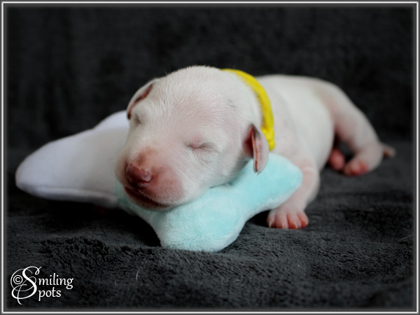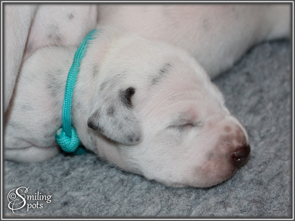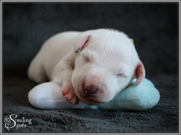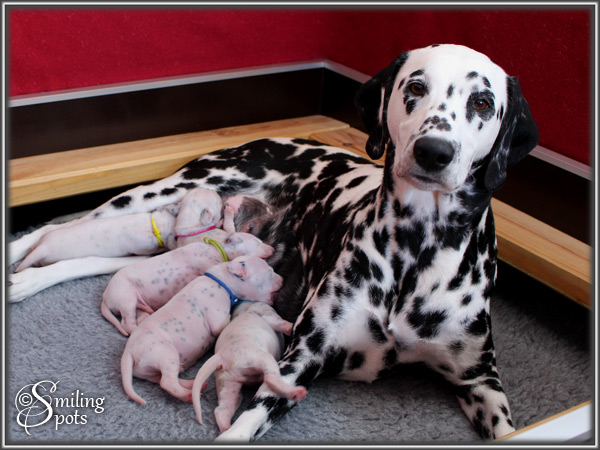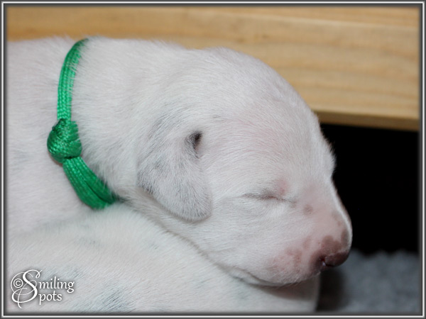 Hey Leute! Ich bin's "Mr. Green". Ich bin der Älteste von uns 7. Wir haben alle in der 1. Woche unser Geburtsgewicht mehr als verdoppelt; dank Mama's leckerer Milch und fürsorglicher Pflege. Im Gewicht liegt aktuell "Mr. Light-Green" vorne. Mama ist ab und zu auch schon mal wieder unterwegs. Aber wir sind ja auch schon "groß", da können wir auch mal einen Augenblick alleine bleiben. Mama kümmert sich super um uns - Tag und Nacht!! Mama ist und bleibt eben einfach die BESTE! Soo, nun muss ich aber auch wieder los; Mama-Milch trinken - will ja schließlich mal in Papa's Pfotenstapfen treten können...